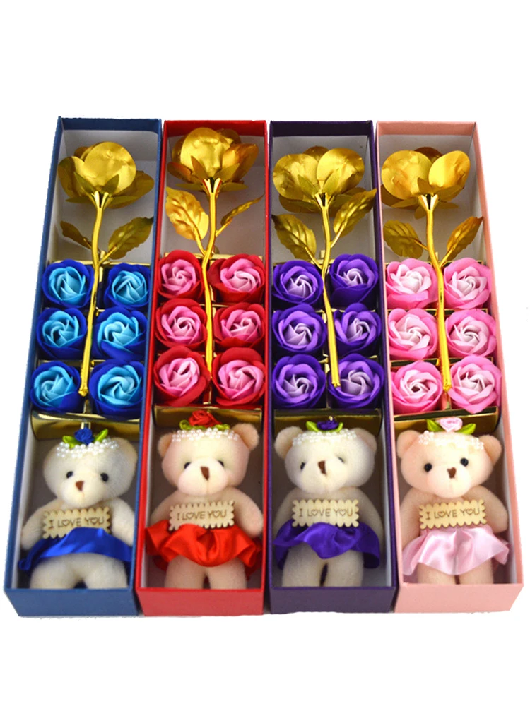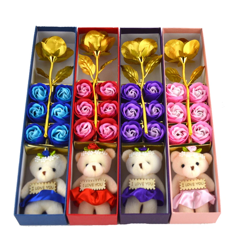 Specifications: 6 flowers + little bear + gold leaf flower + gift box